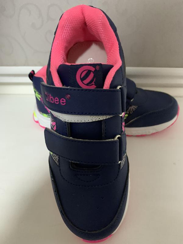 Кросівки для дівчинки темно синього кольору зі вставками підійдуть як для повсякденного носіння так і для спорту , виготовлені з штучної шкіри, устілка всередині шкіряна , ортопедична для формування стопи .Спереду дві застібки-липучки .Підошва легка та міцна.