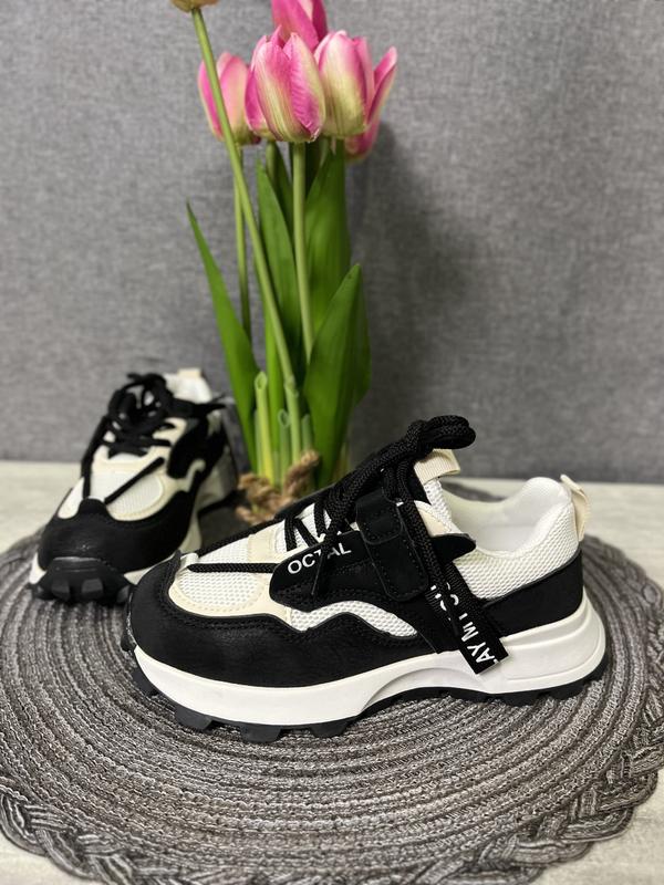 Матеріал верху екошкіра та текстиль. ПВХ підошва. Модель на шнурівці та застібці липучці. 35-21,2 см