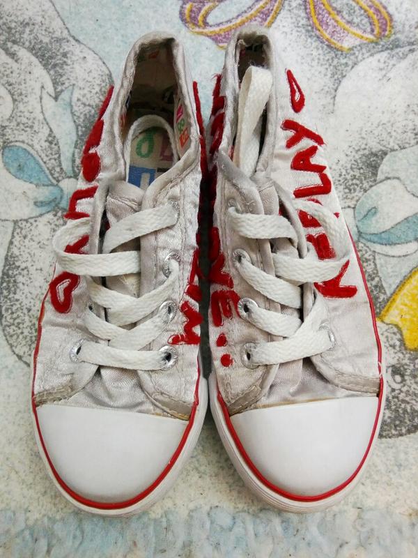 кеды на девочку состояние не плохое,есть правда дефект протертая ткань на заднику на фото указала ,а так отличная обувь под джинсы и под шорты. 17см стелька