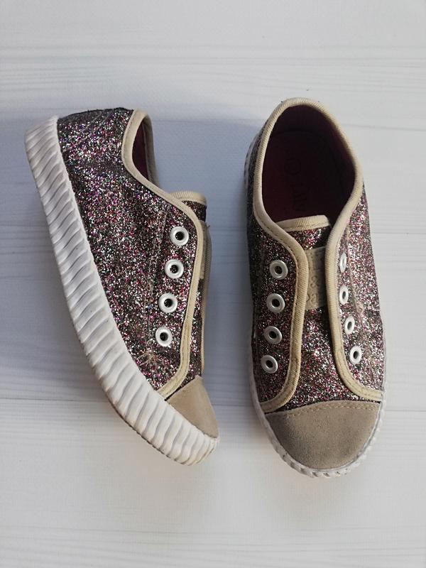Класні кеді для модниці. Розмір вказаний 12, 30 Устілка 18,5 см Стан дуже хороший.На носику плямка,та вона абсолютно не помітна. Матеріал текстиль.