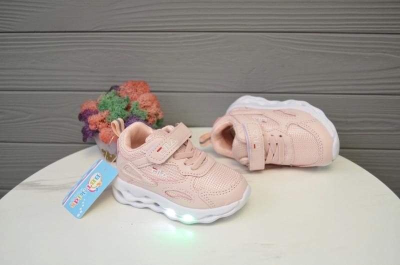 В наличии Пудровые светящиеся кроссовки Верх эко кожа + не сквозная плотная сетка Стелька кожаная с супинатором Фиксация-липучка и шнурок-резинка Очень лёгкие и удобные 36-21,8 см - 2 пары