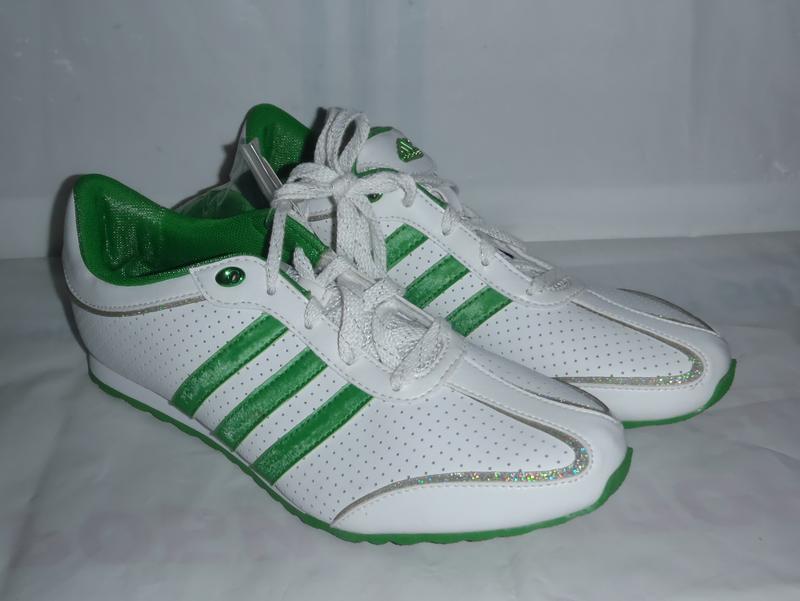 Только оригинальная продукция - никакого левого стока Новые Кроссовки ADIDAS SPRINTESSA EXT J ADIGIRL Размер: 36,5-37 (5 US) (4,5 UK) (37 1/3 F) (JP 235) Длина стельки: 24см. На ногу 23,5см. . Размер: 37 (5,5 US) (5 UK) (38 F) (JP 240) Длина стельки: 24,5см. На ногу 24см. . Размер: 38 (6 US) (5,5 UK) (38 2/3 F) (JP 245) Длина стельки: 24,5см. На ногу 24см. . Размер: 38,5-39 (6,5 US) (6 UK) (39 1/3 F) (JP 250) Длина стельки: 25,5см. На ногу 25см. . Размер: 39 (7 US) (6,5 UK) (40 F) (JP 255) Длина стельки: 26мм. На ногу 25,5см. Артикул: U41523 Цвет: Белый-зеленый Материал: Натуральная Кожа Назначение: Активный Отдых / Lifestyle Очень стильные кроссовки из натуральной кожи с двумя комплектами шнурков (белый и зеленый) Зеленый цвет яркий (картинка не передает)