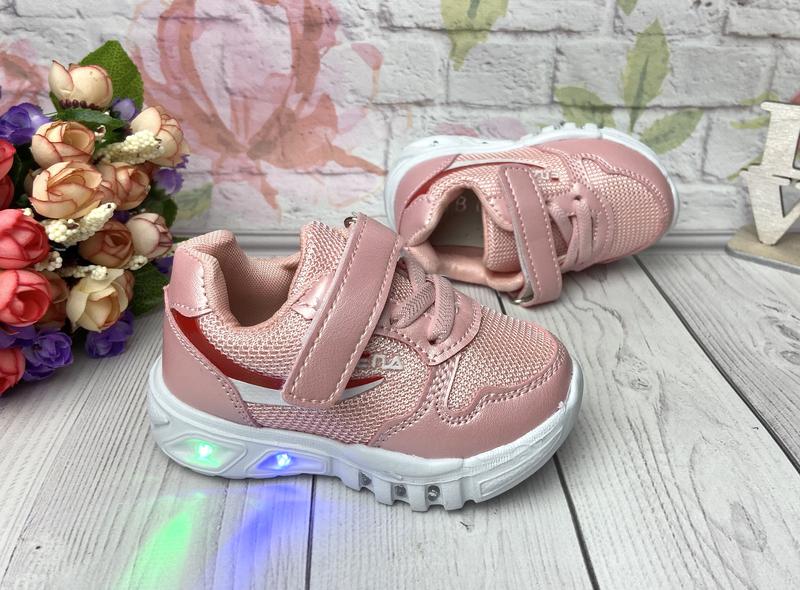 В наличии Новинка весна Пудровые светятся кроссовки Верх эко кожа + не сквозная плотная сетка кожаная Стелька с супинатором Фиксация-липучка и шнурок-резинка Очень легкие и удобные 24-14,1 см