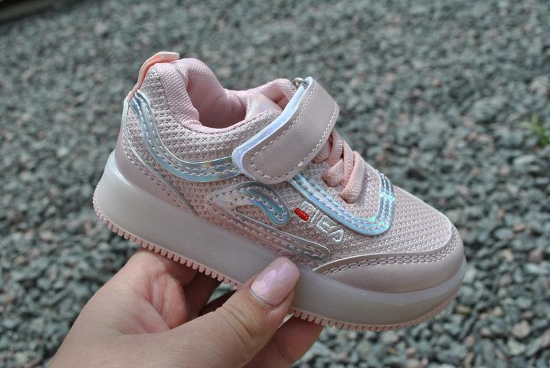 Стильні кросівки еко шкіра +перламутрове напилення ніжку фіксує липучка та шнурочки підошва резина підошва світиться з переходами устілка шкіра 21-13 см 1 шт 22-13,5 см 1 шт 23-14 см 2 шт 24-14,5 см 2 шт 25-14,8 см 1 шт 26-15,5 см 1 шт 36#