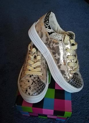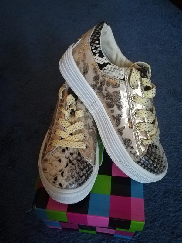 Кеды для девочки новые вверх кожзам "под рептилию" с золотом. Шнурки с золотой ниткой. Размер 31. Новые.