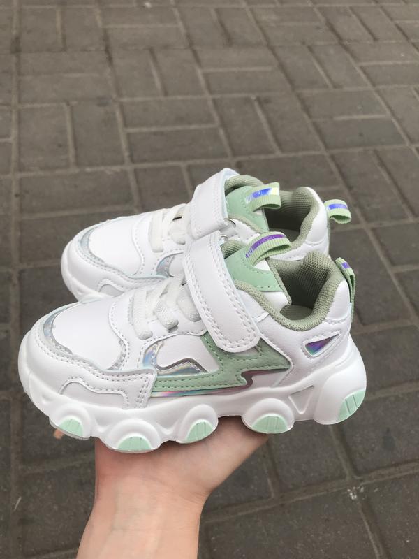 Дуже стильні білі кросівки. Підошва з піни, дуже дуже легкі. Розміри: 26 15.5см 27 16см 28 16,8см 29 17.5см 30 18.см