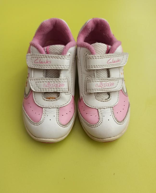 Кожаные кросовочки Clarks 13см стелька.Сбоку кросовочки светятся при ходьбе. Б/у ,в отличном состоянии.Передки полностью целые .Пишите