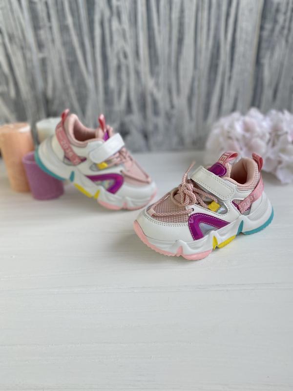 В наличии!Яркая весенняя новиночка!🥰 Очень красивые кроссовочки для вашей принцессы😍Модель достойна внимания🌸 🌸Вверх экокожа+текстиль 🌸Задник жесткий 🌸Внутри перфорированная стелька с супинатором 28 р 17 см