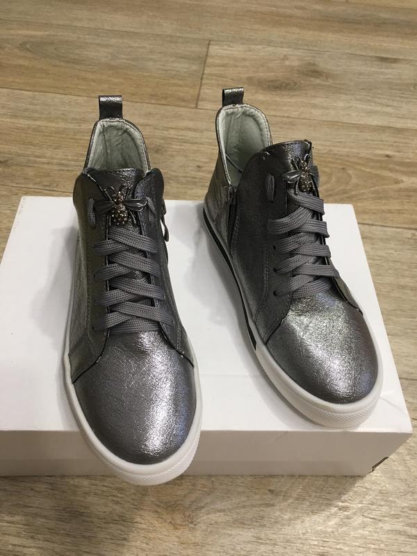 Продам ботінки-кеди , дуже стильні та якісні , верх екошкіра , в середині шкіра без фліса , супинатор відсутній . Розміри 33❌ 35-21 см 36-22 см