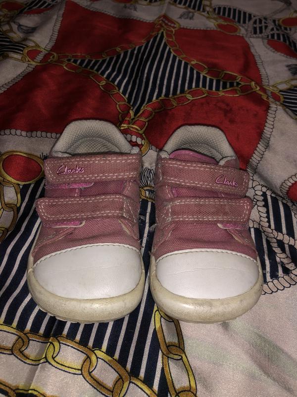 Clarks кроссовочки на липучках. Для первых шажочков и для коляски- для нас были идеальным вариантом. Дефектов нет. Возврат товара не предусмотрен.