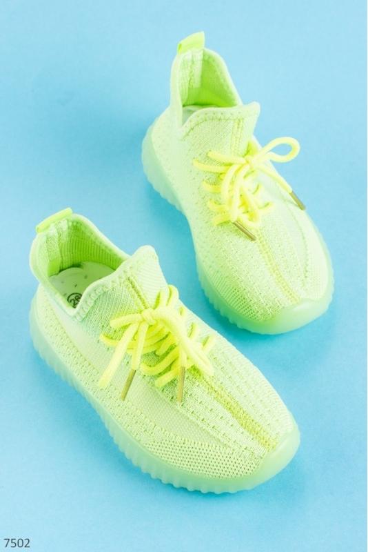 Кроссовки для девочек Цвет - салатовый Материал верха - текстиль Размерная сетка: 26-31 Замеры по стельке: 26 размер 16 см 27 размер 16,5 см 28размер 17 см 29 размер 17.5 см 30 размер 18 см 31 размер 18 см Без коробки от поставщика