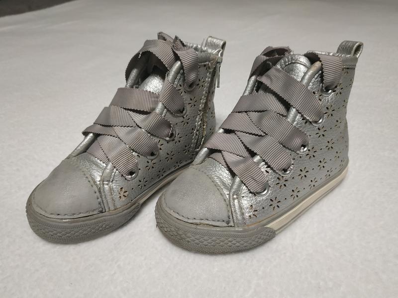 Ботинки кросовочки демисезонные от фирмы Next на ножку длиной 13 см. Стелька не вытягивается , поэтому на фото показываю замер по подошве ( 15 см). Молния в рабочем состоянии, полноту по ножке можно регулировать с помощью шнурочков. Остальные дефекты (поцарапанные и сбитые места) постаралась показать на фото.