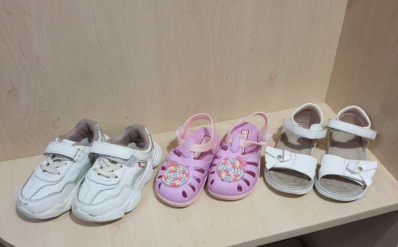 Кроссовки белые-25 размер 15.5 см стелька,есть нюанс -90грн(есть потерность) Розовые резиновые босоножечки - стелька 15.5 в идеальном состоянии -100 грн Босоножки белые-24 размер ,стелька 15.5 см в идеальном состоянии-190грн