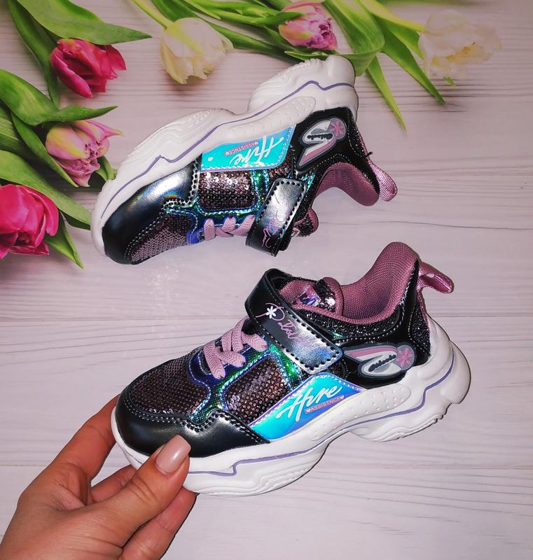 💕Красивенные кроссовки для девочек💕 На ножке круто смотрятся 👍 Материал верха кожзам.+паетки+люрекс Стелька кожаная с супинатором. Фиксация :липучка+ шнурок-резинка. Размеры в наличии: 🔸28р-18 см 🔸29р-18,6 см(2 шт) Цена грн 300 грн Замеры сделаны лично мной,возможна погрешность +-1мм