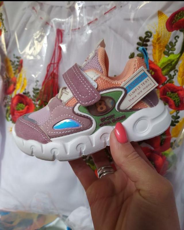 Лёгкие кроссовки на пенке, объём регулируется шнуровкой- резинкой с плотной фиксацией прочной липучкой, стелька-кожа, есть супинатор. Верх изделия- комбинированная дышащая сеточка, носочек и пятка- уплотнены. Размеры:22-27 Длина стельки: 22 размер- 14 см 24 размер- 15 см 25 размер- 15.5 см 26 размер- 16 см 27 размер- 16.5 см