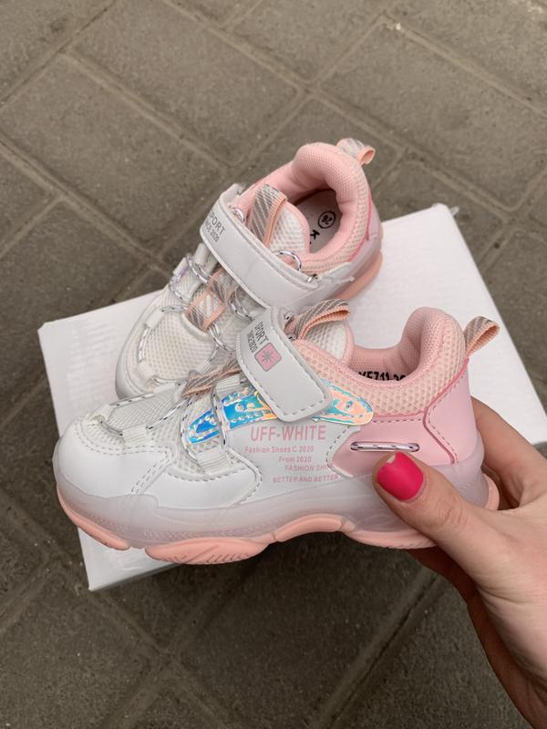 Стильні кросівки для дівчинки. Ніжно ролей та білий колір, Шкіряна устілка з супінатором. Верх сіточка. Підошва силіконова. Розмір 26 15.7см 27 16.5см 28 17.8см 29 18см 30р 19см 31 19.5см