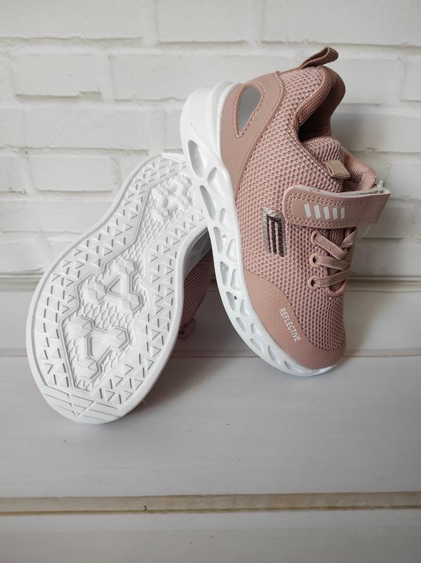 Ультралёгкие текстильные кроссовочки на девочек. Прорезиненные пятка и носочек, стелька - кожа с супинатором. Фиксация на ножке липучкой и шнуровка-резинка. Ледподсветка. 28 - 17,7 см 29 (2)- 18,3 см