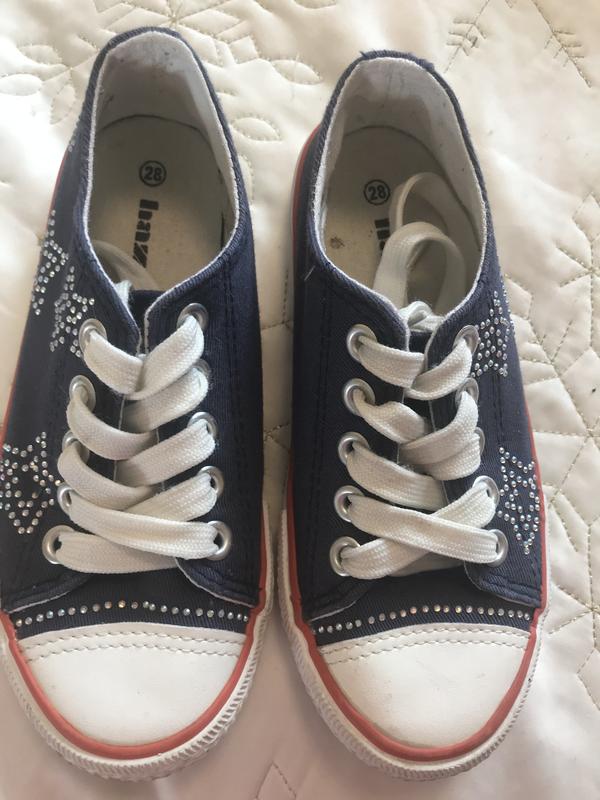 Кеди на дівчинку на шнурочках, колір синій , збоку зірочки стрази,розмір 28( устілка 18 см).