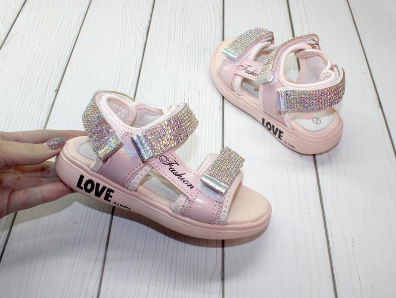 Новинка для девочек! Очаровательные босоножки для девчонок! Стразики надежно приклеены, на силиконе. Верх эко - кожа Стелька кожа, супинатор. Фиксация на три липучки Замеры от края до края: 28 размер 18.5 см 28 размер 18.5 см 29 размер 19 см 29 размер 19 см 31 размер 20.4 см.загранич