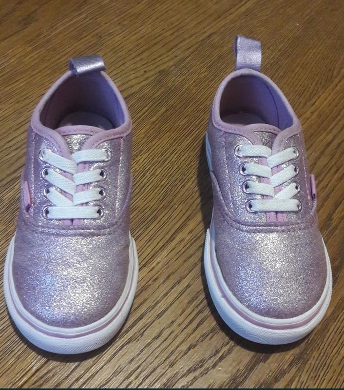 Кеди Vans для маленької принцеси розмір 23,5 устілка по бірці 12 см, по факту 14,5 см( є фото). Дуже красива, стильна, легенька модель. Еластичні шнурки. Стан відмінний . Фото відповідає.