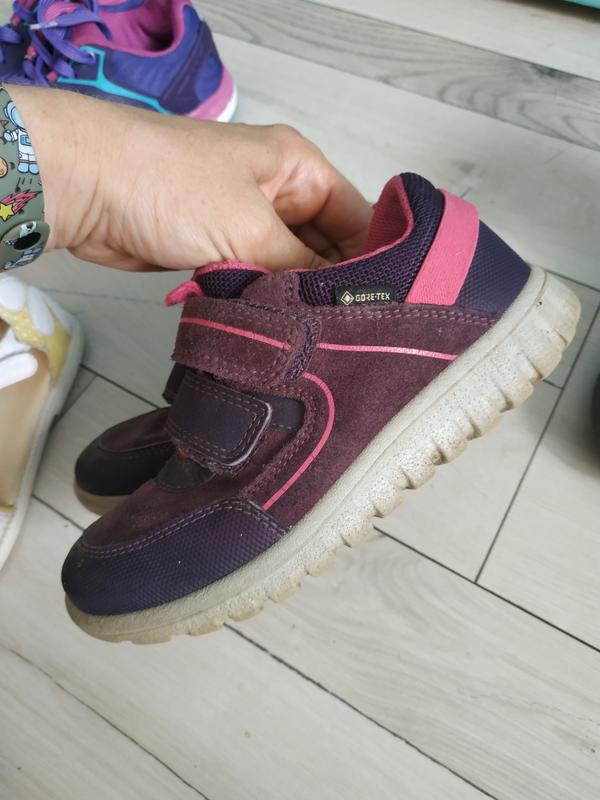 кросовки или туфли, носились в школу, на липучках, очень удобно. Замшевые, носочки защищённые, есть небольшие потёртости, но очень несущественные. на одном языке липучка порвала ткань. на ножку до 18 см.