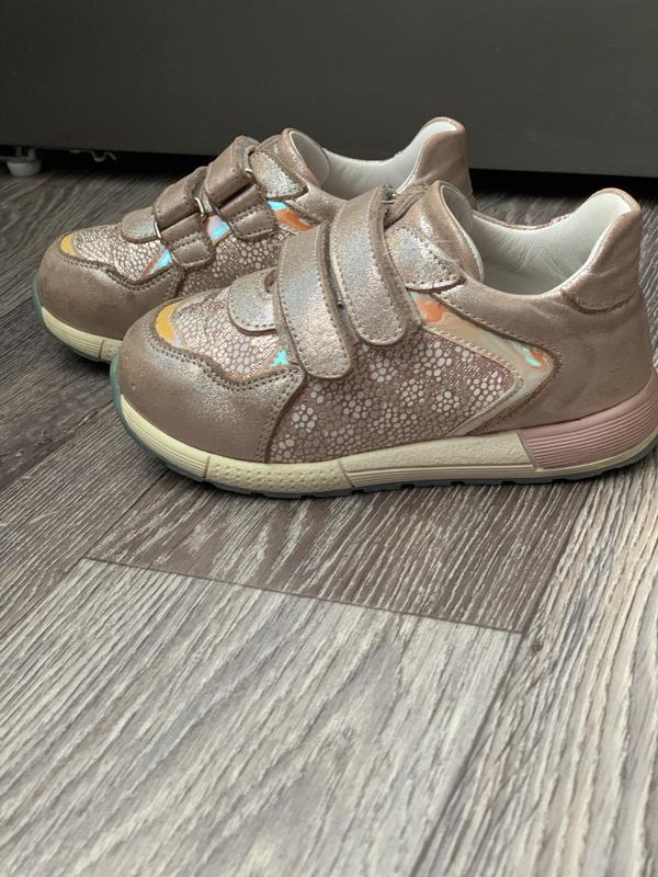 Полностью кожаные, ортопедические кроссовки на девочку. После первого ребёнка, сюиты носки , но в целом состояние хорошее, твёрдая пятка , стелька с супинатором.