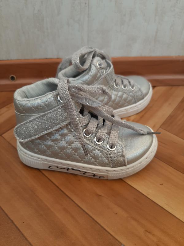 Стильные ботиночки демисезон в состоянии новых. Немного потрепались шнурки об липучку. Носки, подошва и липучки рабочие. Стелька 14,5 см