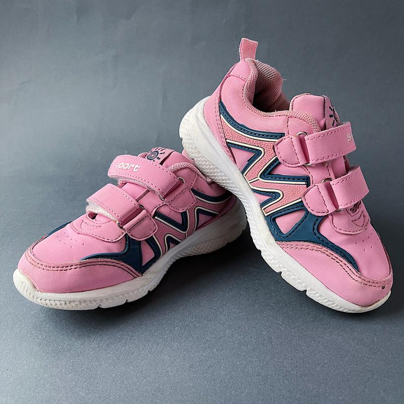 Кроссовки для девочки в хорошем состоянии,очень легкие. Размер 28,длина стельки 17,6см. Из нюансов только маленькая сдертость на носке левого кроссовка,на фото 3 видно,но в глаза совсем не бросается.