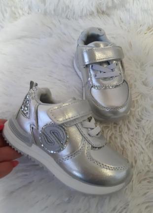 Розміри з 20 по 26 Ефектні сріблясті кросівки для маленької модниці. Підошва дуже гнучка з полегшеною гуми. Шнурки для дизайну.Застібаються на липучку. Модель дуже добре підходить для сирої погоди. Перевірена на своїй дитині😉