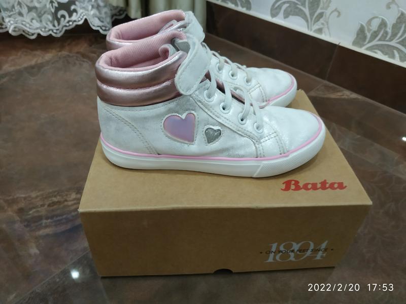Очень классные хайтопы фирмы Бата, эко- кожа хорошего качества, дочка их очень любила носить. Размер 30, замер стельки указано на фото. Есть липучка, что очень удобно. Состояние отличное!