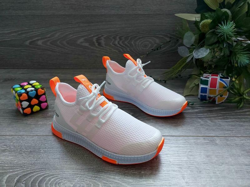 Турція Модні кросівки кеди демі ) Верх текстиль + шнуровка стелька перфорована+супінатор легесенькі колір білий+оранжевий неон заміри по стельці ВЖИВУ СУПЕР😍 34-21.3см