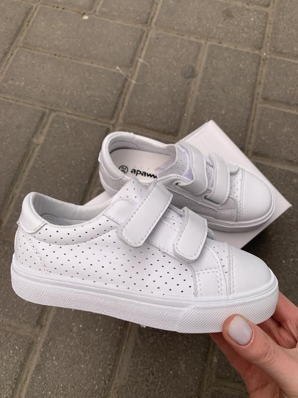 Стильні білі кеді на літо. Рег липучками. Гнучкі, м'які ягкі. Один з кращих виробників Apawwa. Розмір: 20, 22, 25 Універсальні для хлопчиків та дівчат.