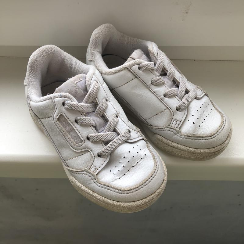 оригинальные детские кроссовки Adidas Continental 80 Размер 23 по бирке указана 13.5 см. по факту 14,0см. На резинках, очень удобно материал кожа