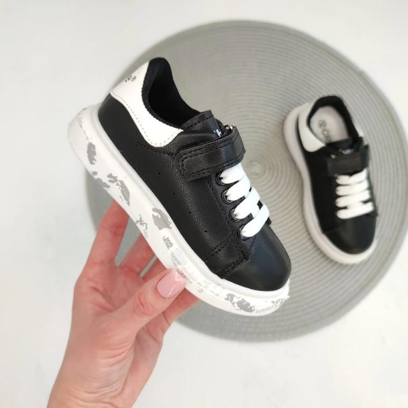 Кросівки від ТМ Clibee 🖤 Зовні якісна екошкіра. Устілка текстильна, перфорована, анатомічна. Фіксуються однією липучкою. Підошва з принтом з зовнішньої сторони. Маломірять! Розміри: 26-16,5 см 28-17,7 см 29-18,5 см 34-20,7 см