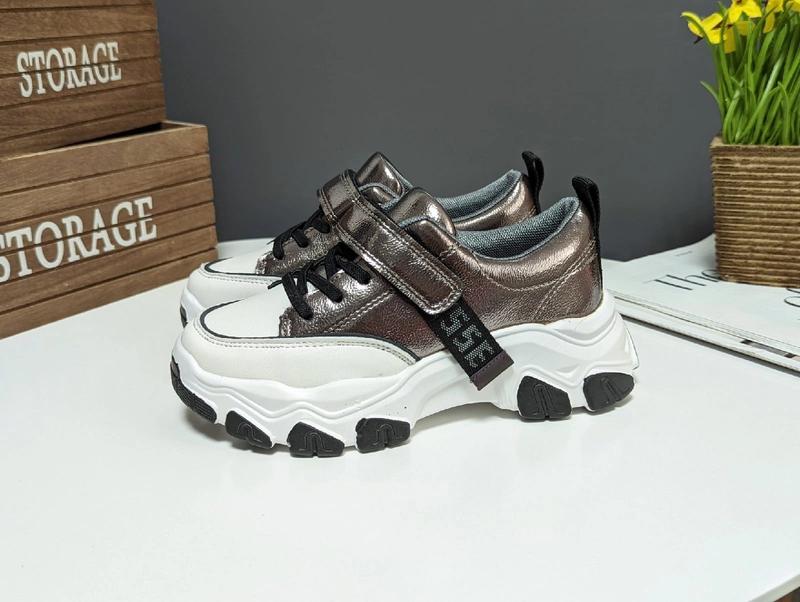 Стильна новинка для дівчаток на модній підошві. Верх еко шкіра. Устілка шкіряна з супінатором. Фіксація на липучку. Дуже легенькі на зручні. Маломірять, орієнтир на заміри. Розміри: 33р-20,7 см ✅✅Ціна 620