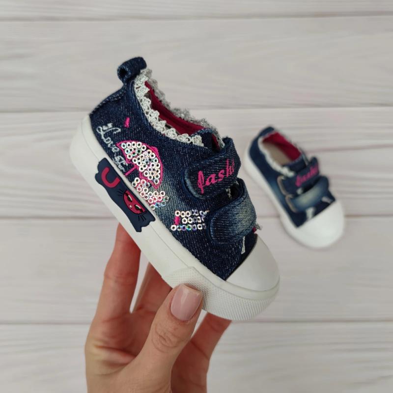 Кеди з джинсової тканини для модниць 💕 Легкі! Присутні дві липучки. Носок захищений від збивання. Підійдуть на будь-який об'єм та підйом ніжки. Розміри: р.21-13 см р.23-14 см р.25-15 см (2)