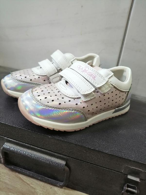 Продам кроссовки для девочки лёгкие, ножка дышит. На липучках. Размер 25 на подошве , стелька 16 см Из нюансов стерлась краска на носочках.