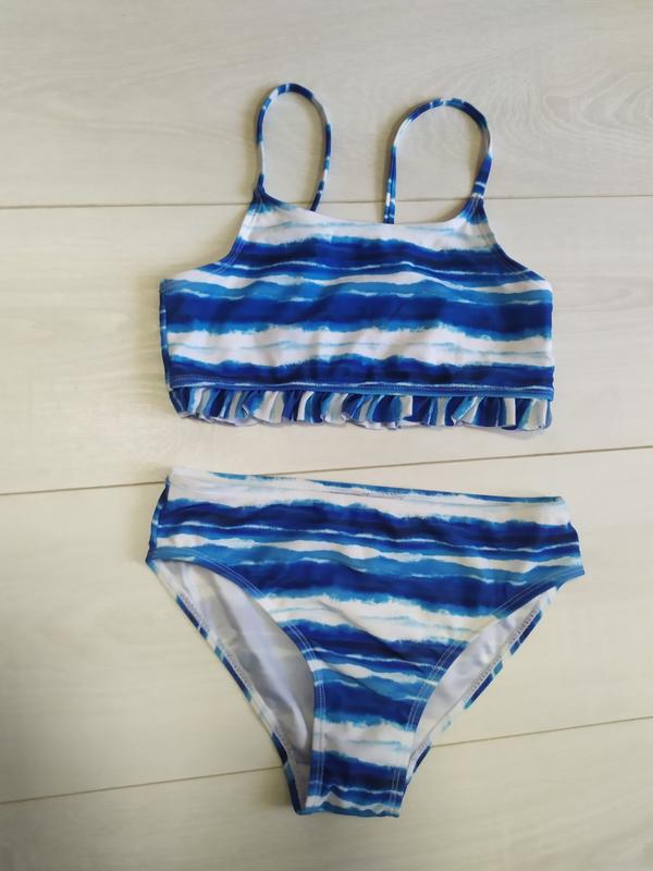 Роздільний купальник для дівчинки англійського бренду Primark. Колір - синій. Захист від ультрафіолетового випромінювання і подразнення шкіри. Підійде для моря, аквапарку або басейна. Ціна вказана за 1 купальник. Розмір в наявності на зріст 134см