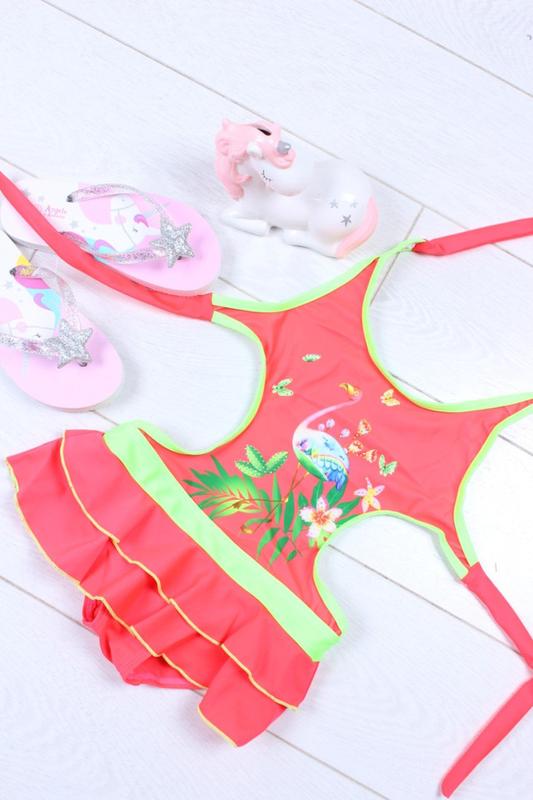 Детский цельный купальник фламинго с юбочкой и цветочками, р. 3-года, коралловый