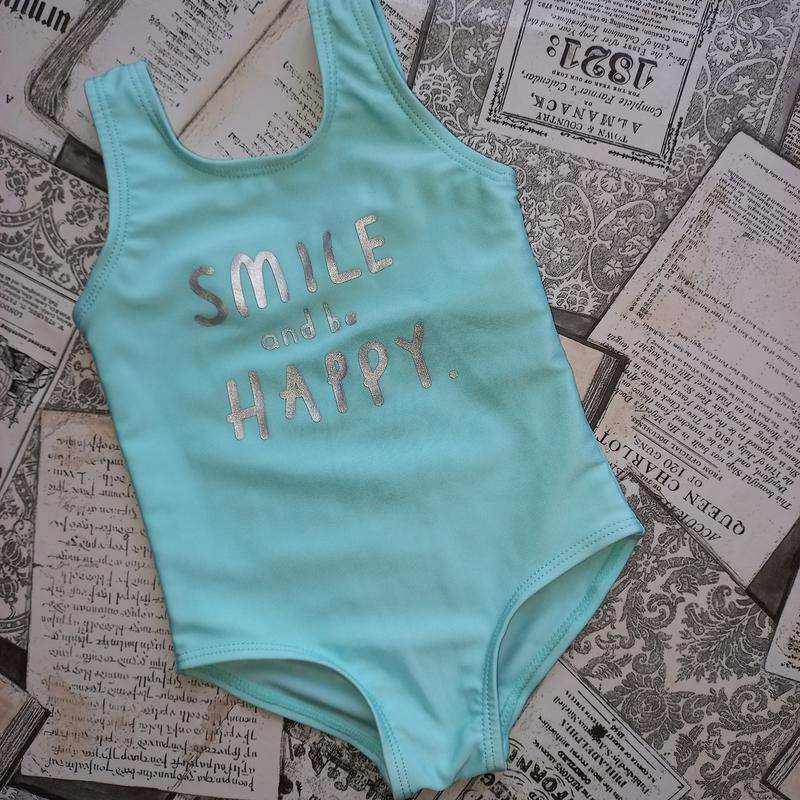 СТОК! Купальник для девочки на 74 см. Полномерный. Купальник сочный, с серебристого надписью "Улыбайся и будь счастлив". Спереди на подкладке. ТМ Primark Цвет: бирюзовый Высота: 37 см Пояс: 22 см, тянется до 35 см Оригинальная цена 5 евро. Приятных Вам покупок!
