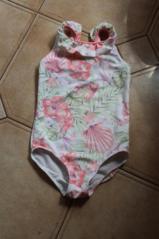 Спереди купальник двойной - на внутренней белой ткани есть пятнышка. На рост 116-122 см.