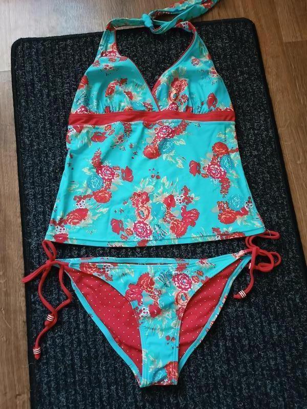 В чудовому стані Розмір верху вказаний S Розмір плавок вказаний М Плавки на зав'язках Висота 22 см Верх: Півокружність під чашками 35 см, тягнеться до 42 см Довжина 47 см Можна дівчинці підлітку Присутній легкий запах обробки