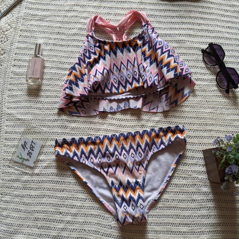 хороший якісний купальник від ремарк від primark плавки повністю подвійні трішки в гіршому стані ніж лів але візуально цього непомітно в поясі 31-41 топ з непоганим напуском повністю розправленим написком спереду 30 см напівавто низу виробу 31-41 висота виробу від плечика до топа приблизно 23 см де-не-де по периметру присутні самі наймікроніші ознаки носіння на останньому фото гарно видно різницю між низом і верхом, якщо не придивлятися зовсім непомітно приймаю замовлення лише після оплати 📍