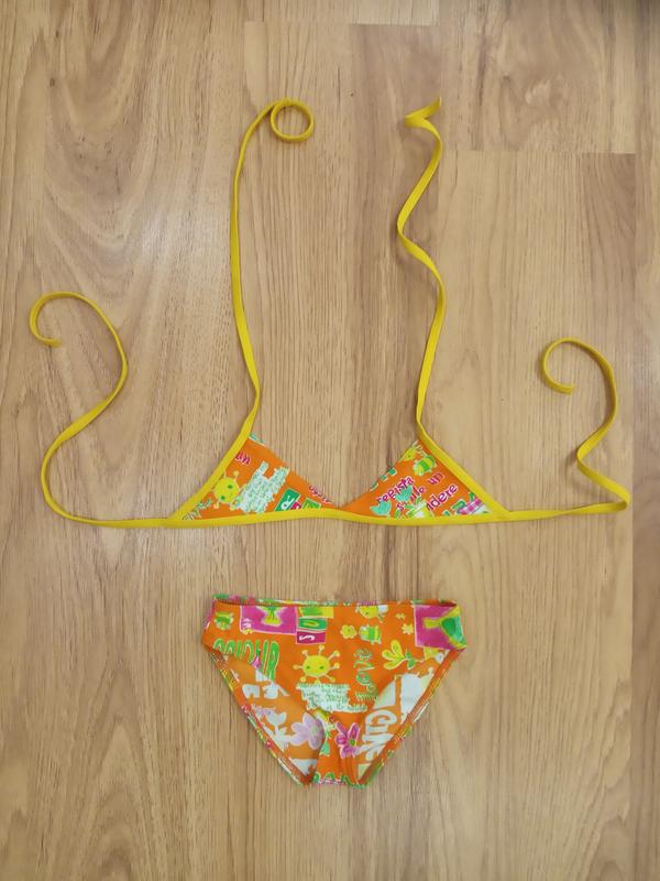 Яркий купальник на девочку 5-7 лет Яркий и красивый цвет. Подходит на возраст от 5 до 7 лет, зависит от индивидуального телосложения ребенка. Купальник был на витрине,правься один раз Ширина по верхней части плавок в спокойном состоянии 24 Глубина посадки спереда в спокойном состоянии 17 см Глубина посадки сзади в спокойном состоянии 18 см