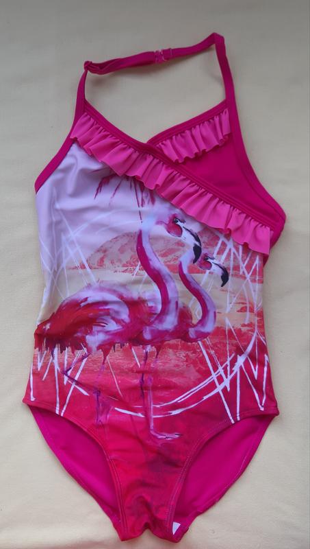 Детский купальник слитный цельный для плавания с воланами рюшами фламинго