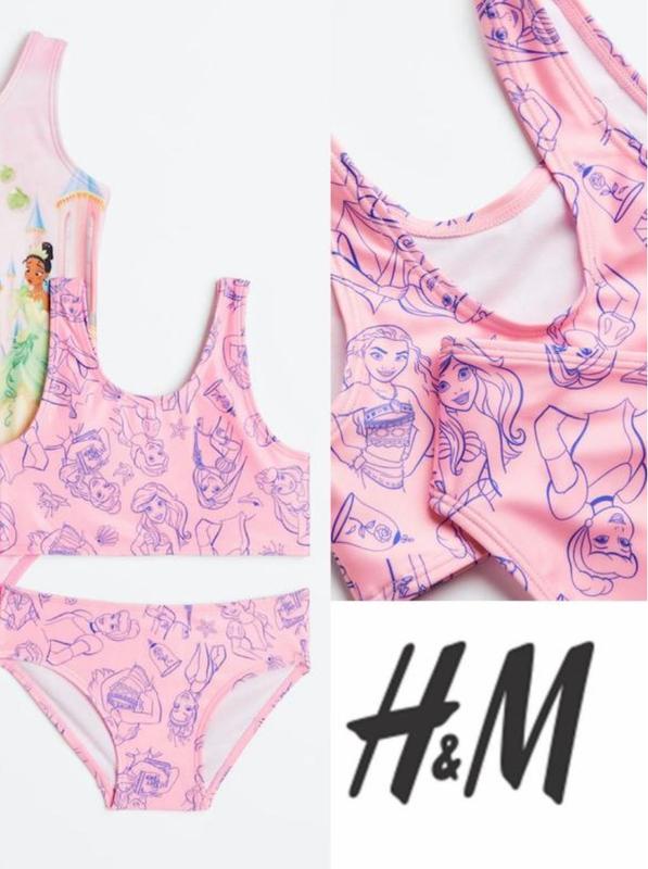 Купальник роздільний спортивного стилю топ плавки бікіні 💃 h&m 6-8 років, 122-128 см прин...