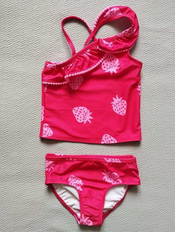 Суперовый раздельный купальник танкини принт клубника с оборкой на плечо на 3 года cat & j...