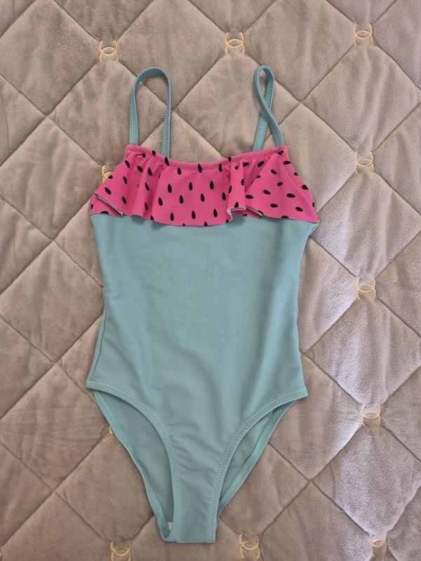 Купальник для девочки По этикетке рост 110 замеры на фото есть маленькие прически, показала на фото