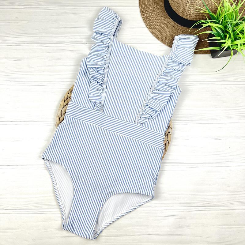 Купальник в блакитну смужку від H&M на 8-10 років, 128-134 см. ▪️ідеальний стан, ближче до нового ▪️тканина 56 поліестер, 38 поліамід та 6 еластан ▪️підкладка м’яка, поліестер ▪️вироб. Камбоджа 🇰🇭 Пог 27.5, тягнеться Талія 25.5 Загальна довжина 56.5
