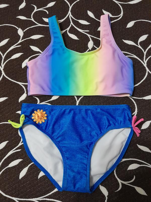 Купальник сборный для девочки 10-11 лет, фирменный. Замеры плавок: длина 23см, полуобхват резинки 30см не растягивая. Замеры топа: длина 26см, полуобхват груди 31см не растягивая.